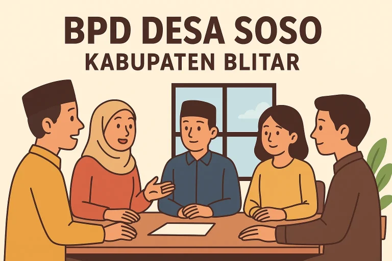 Desa Soso di Kabupaten Blitar merupakan salah satu desa yang aktif menggerakkan pembangunan berbasis partisipasi masyarakat. Dalam proses tersebut, keberadaan Badan Permusyawaratan Desa (BPD) memegang peranan penting sebagai lembaga perwakilan warga desa sekaligus mitra pemerintah desa.